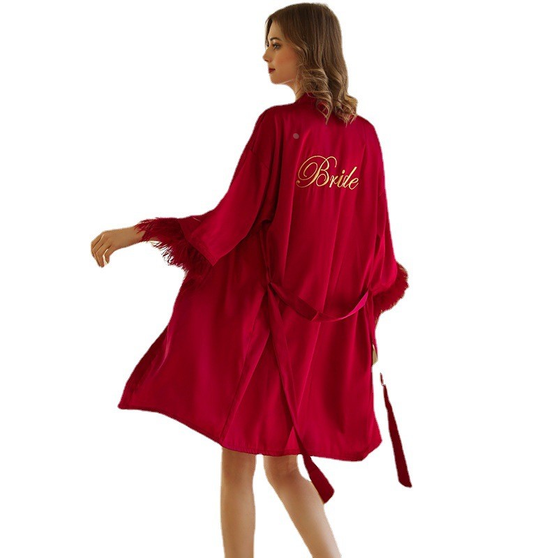 bride新娘袍晨袍女士睡袍婚礼化妆伴娘团结婚和服缎面冰雪丝定制