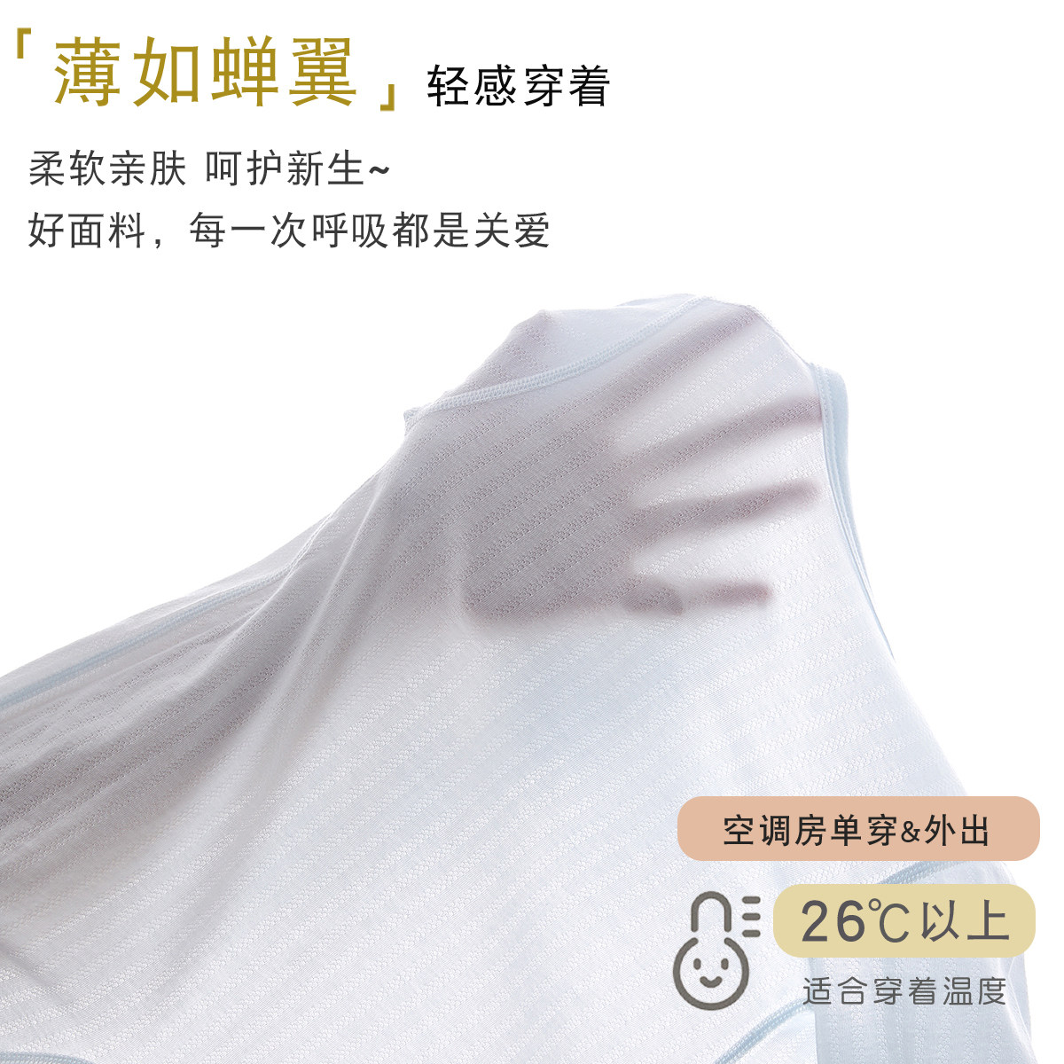 婧麒婴儿夏季薄款提花连体衣男女宝宝长袖空调服新生儿打底哈衣服