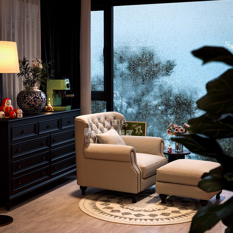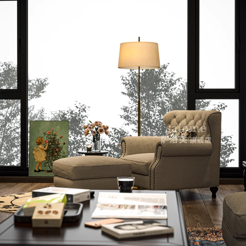 美式轻奢布艺沙发组合小户型棉麻乳胶单双三人位现代简约客厅家具