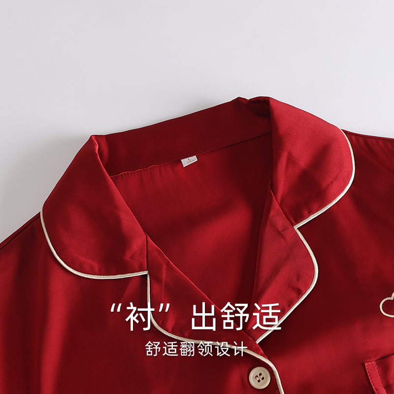 夏季本命年情侣高级感睡衣女冰丝睡裙红色结婚新婚喜事家居服套装