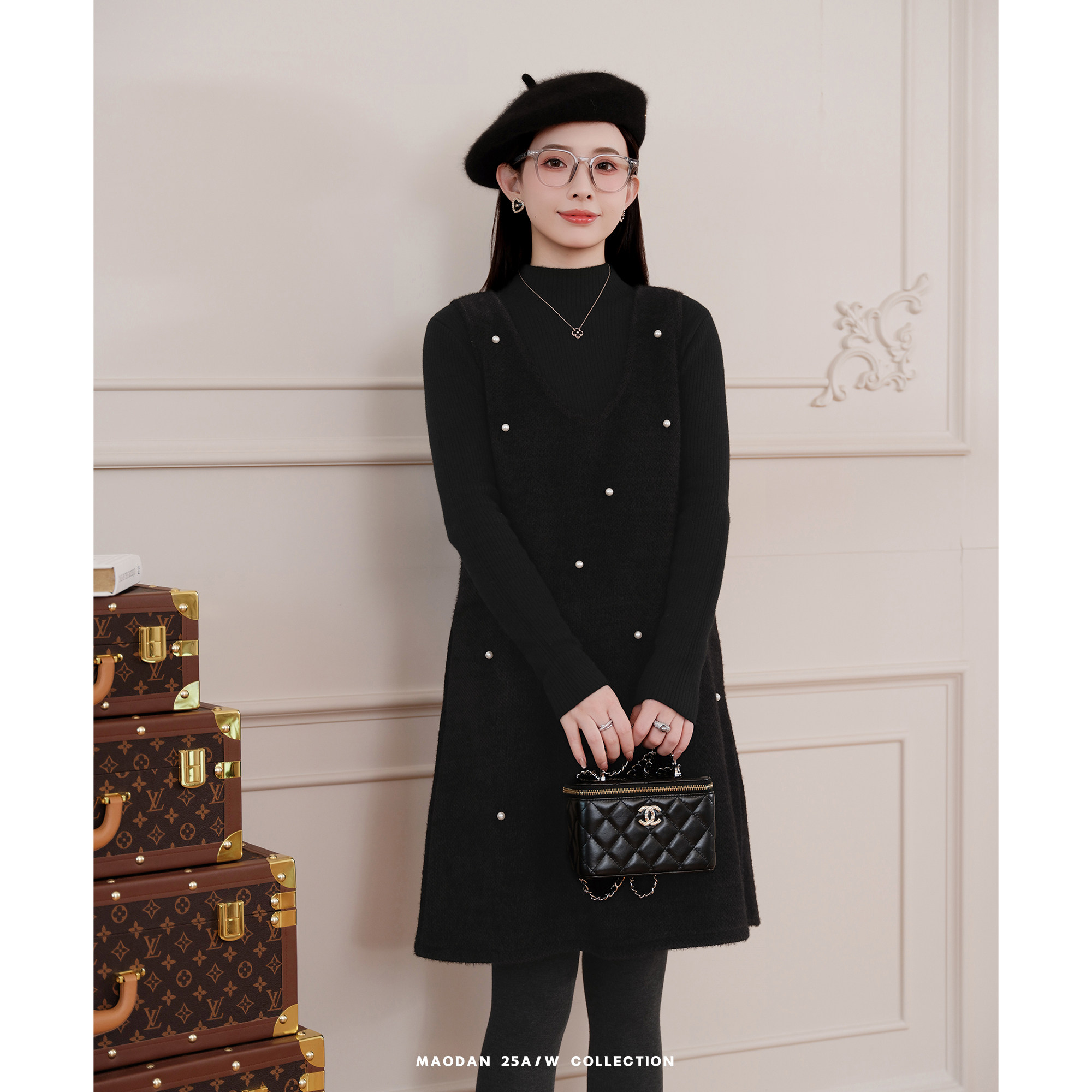 猫单【卡农乐章】娜娜的孕期穿搭孕妇装冬季新品气质背心裙两件套