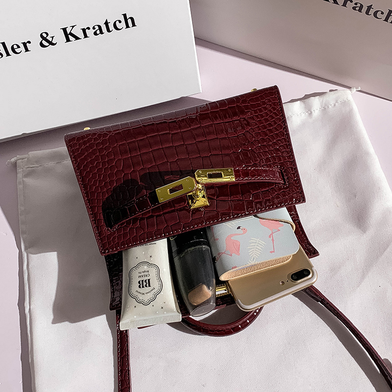 质感鳄鱼纹单肩斜挎真皮包包
