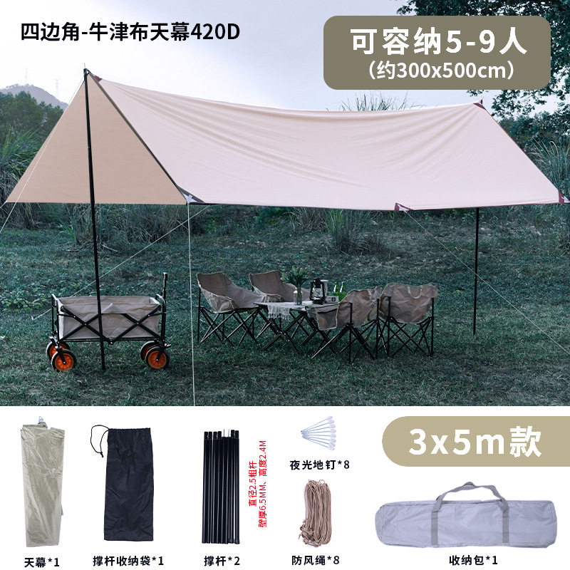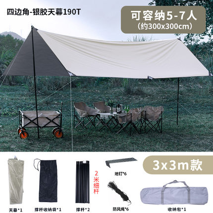 大成户外涂银蝶形露营野餐防雨帐篷天幕黑胶菱形幕X布八角遮阳棚