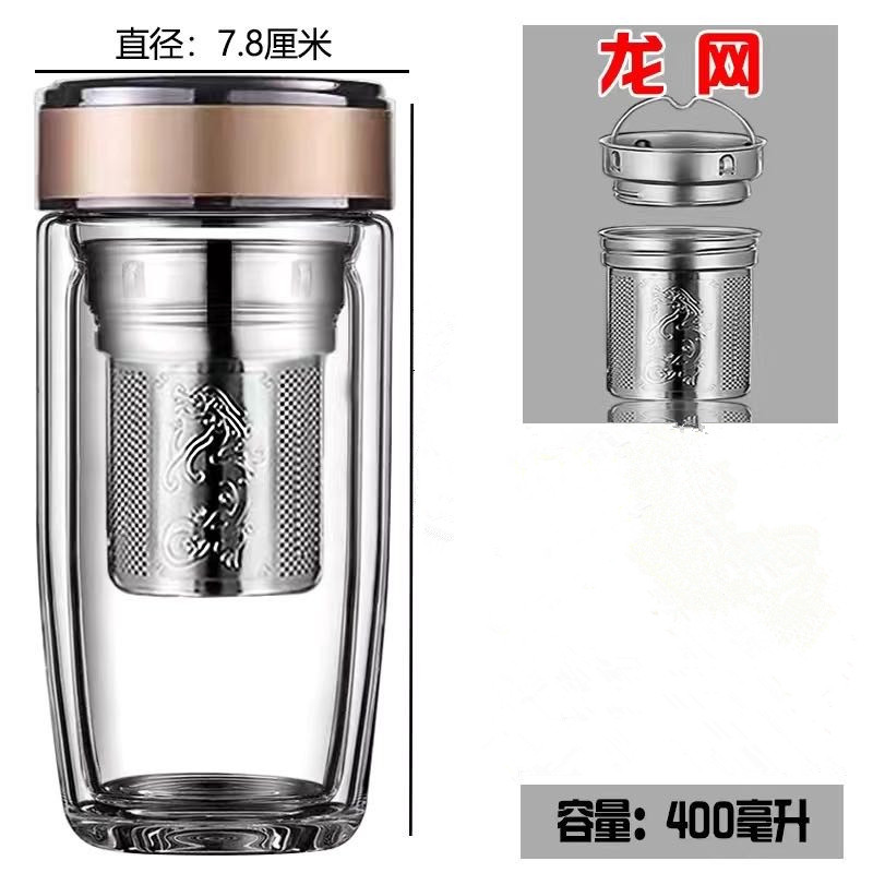 2025新款双层玻璃杯耐高温车载鹅蛋杯办公商务茶水分离水杯定制