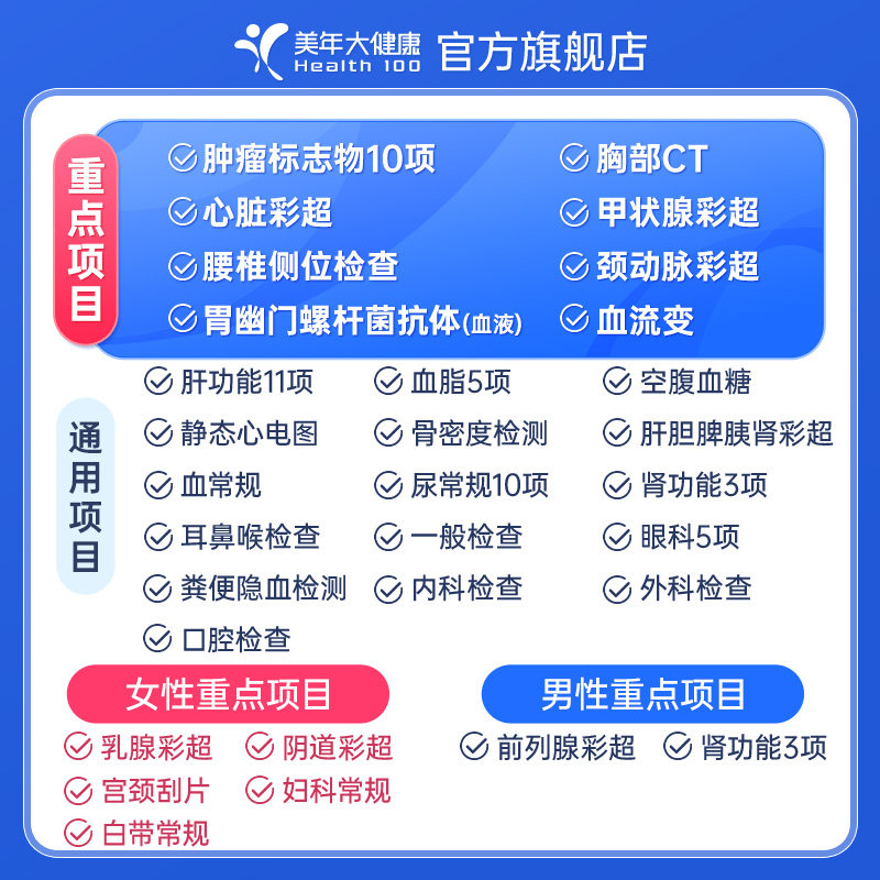 美年大健康旗舰店爸妈尊享父母中老年体检套餐179TMMN00