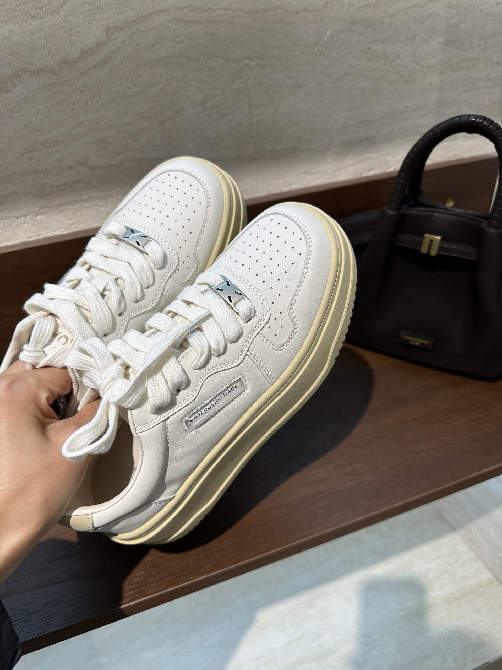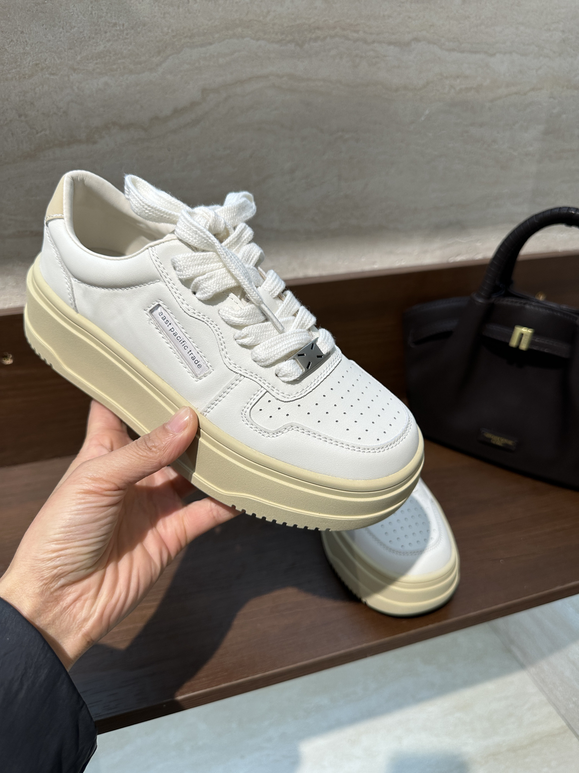 女鞋秋季休闲时尚舒适厚底浅口单鞋圆头系带小白鞋7090-37.1