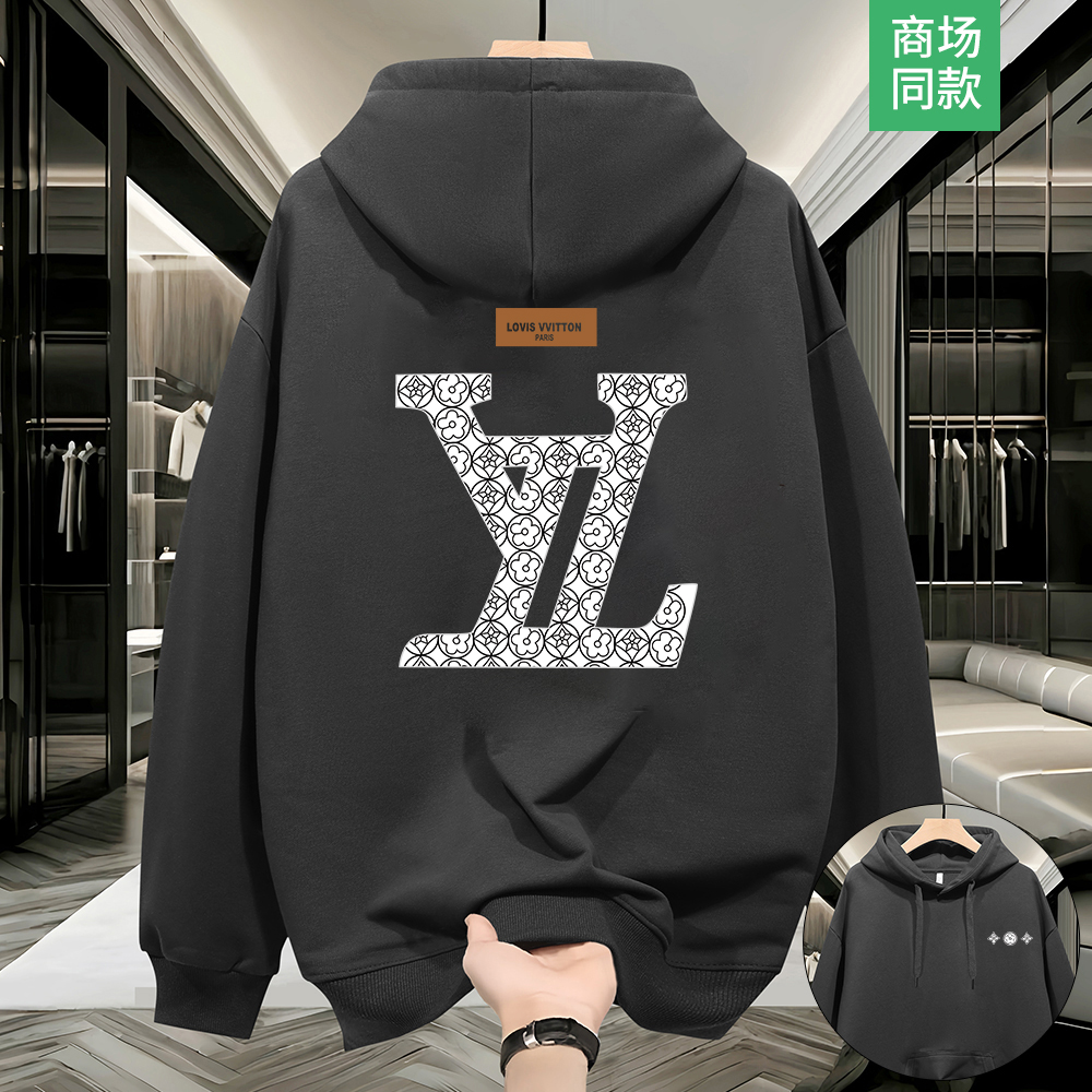 NASA联名加绒连帽卫衣男oversize学生宽松加大码印花外穿上衣秋冬