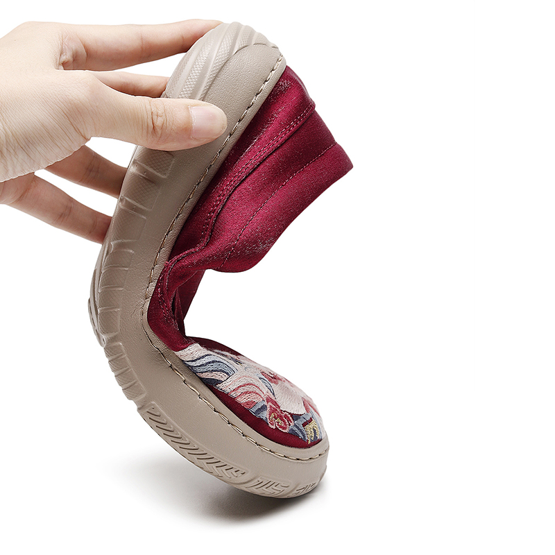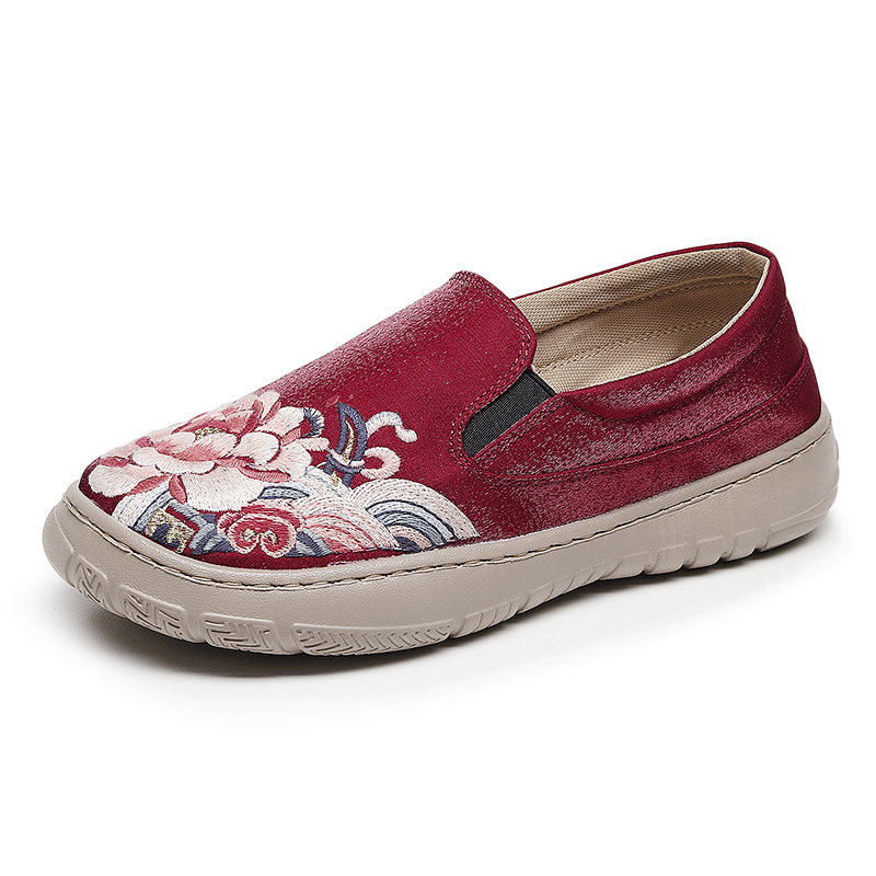 闰月老北京布鞋女鞋民族风绣花舒中老年鞋休闲软底一脚蹬绣花单鞋