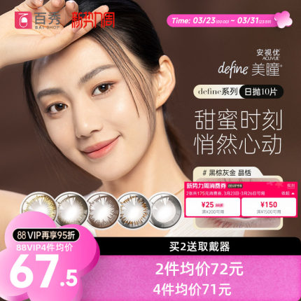 强生日抛美瞳女10片装妍妍自然网红安视优隐形近视眼镜正品旗舰店