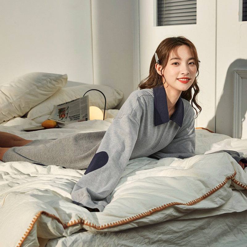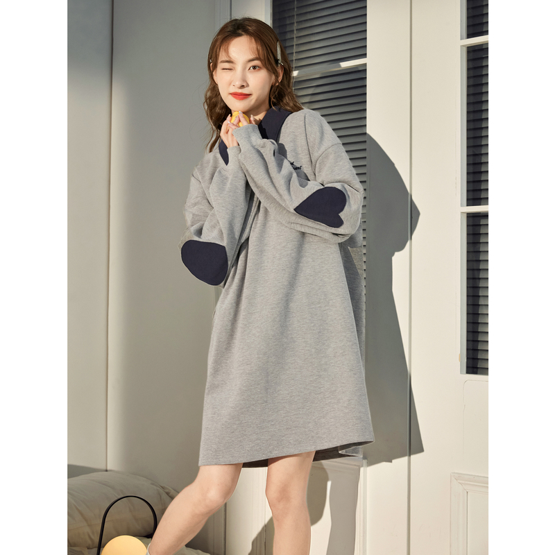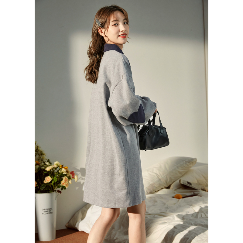 唐狮长袖针织连衣裙女秋冬撞色绣花Polo裙女春秋装小个子穿搭