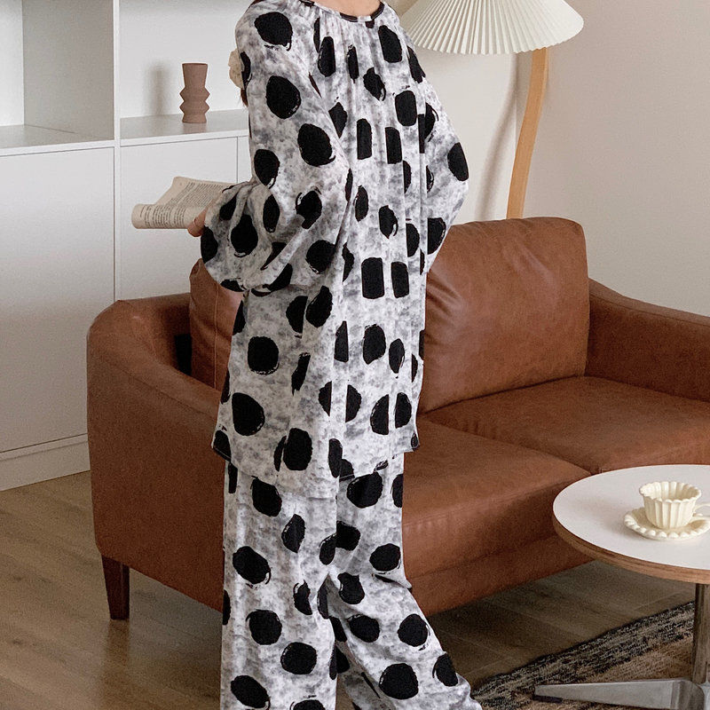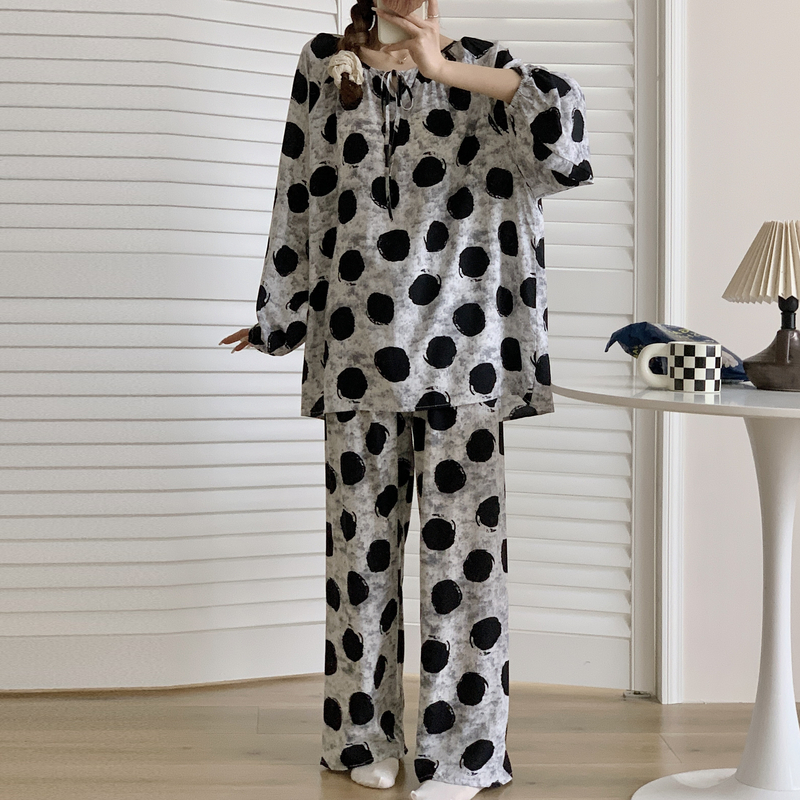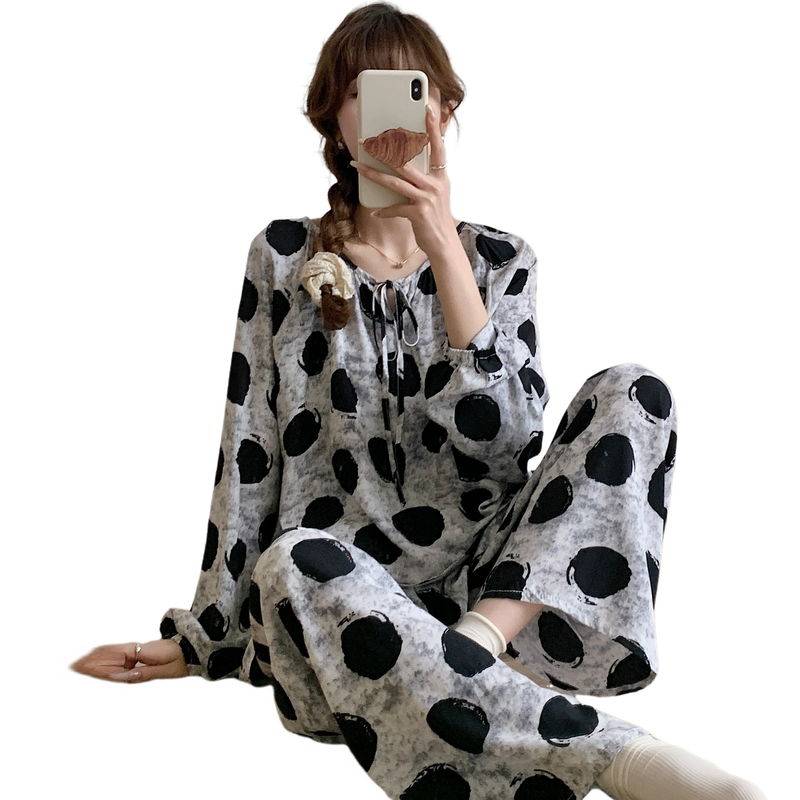 棉绸睡衣女春秋长袖夏季薄款绵绸家居服人造棉可爱套装大码200斤