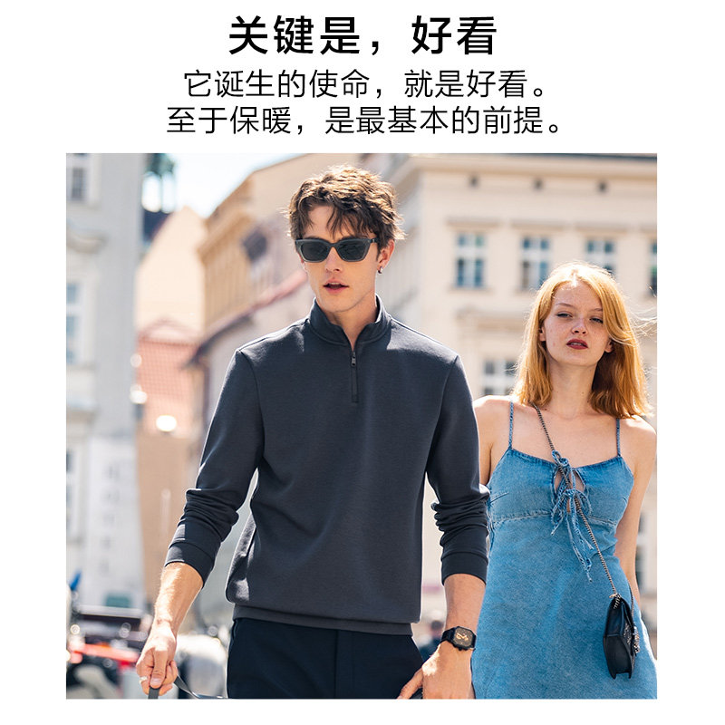 MrBu布先生拉链领高科技加厚保暖内胆秋冬T恤男款长袖卫衣KT15771