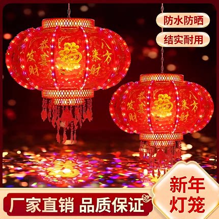 2026年新款七彩旋转led灯笼大门口一对福字投影走马灯户外挂钩饰