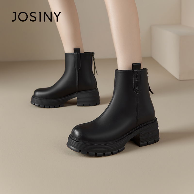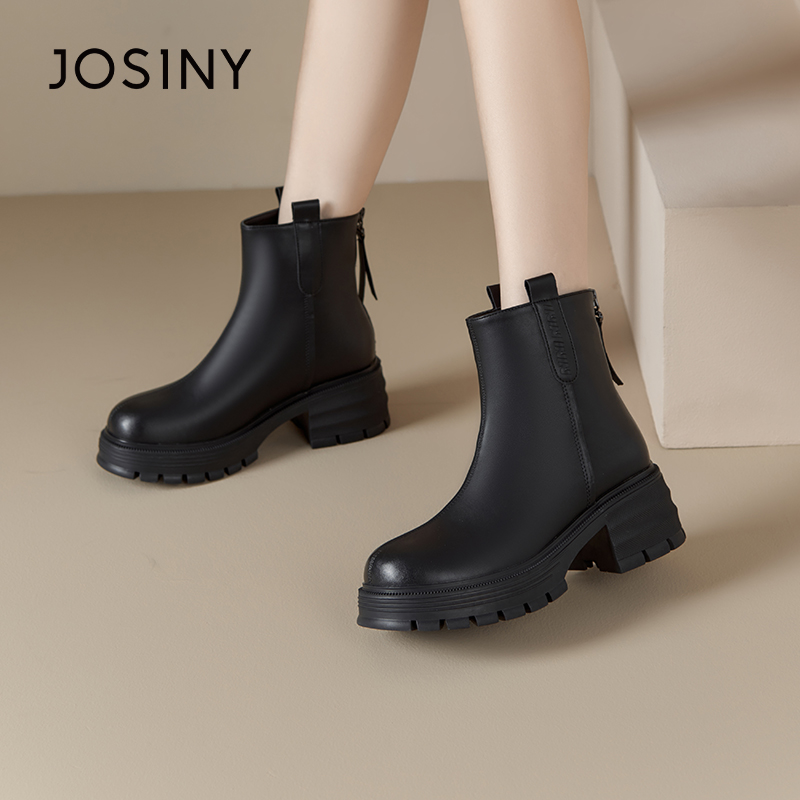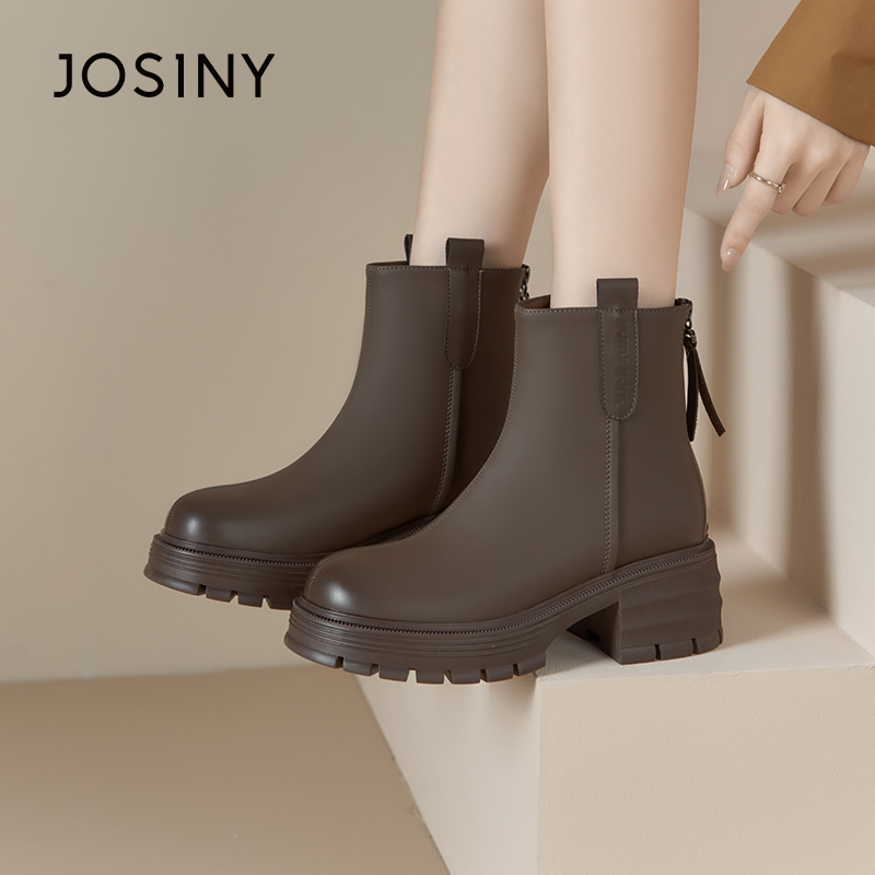 卓诗尼女靴冬季撤柜正品复古厚底切尔西靴舒适圆头双提耳时尚百搭