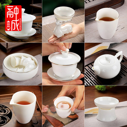 陶瓷羊脂玉茶杯功夫茶品茗杯盖碗茶壶过滤公道杯泡茶茶盏主人单杯