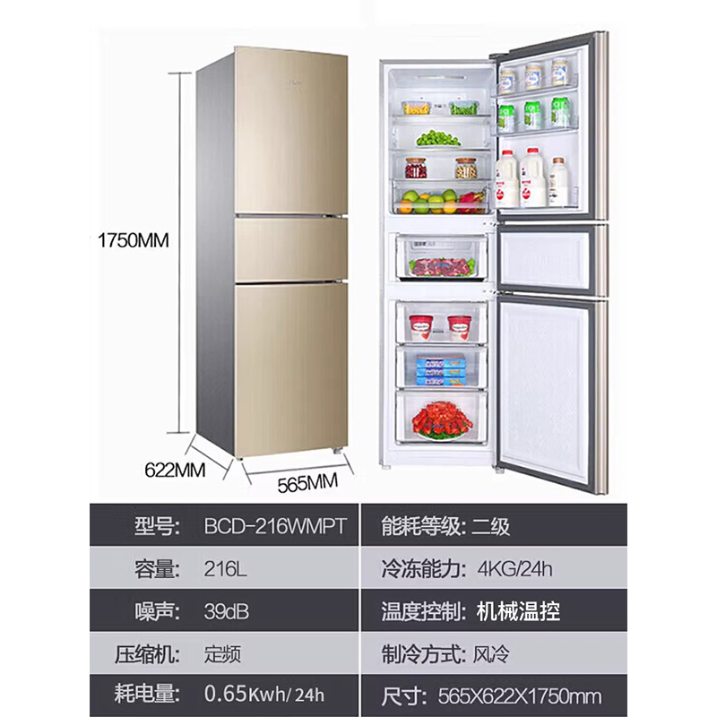 海尔无霜冰箱三开门216升家用节能小型风冷218电冰箱三门官方正品