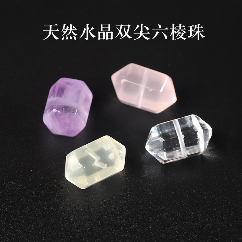 7A天然紫黄粉白水晶散珠子双尖六棱柱男女士手串手工diy手链项链
