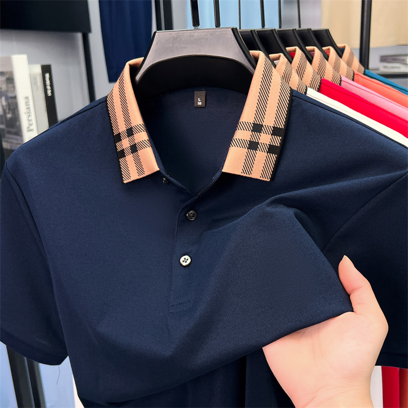 2025夏季新款短袖t恤男士特色格纹电脑领翻领polo衫商务休闲男装