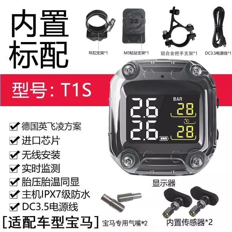 KEVTU科惟途摩托车胎压监测器内置外置T1S两轮胎压检测仪报警装备