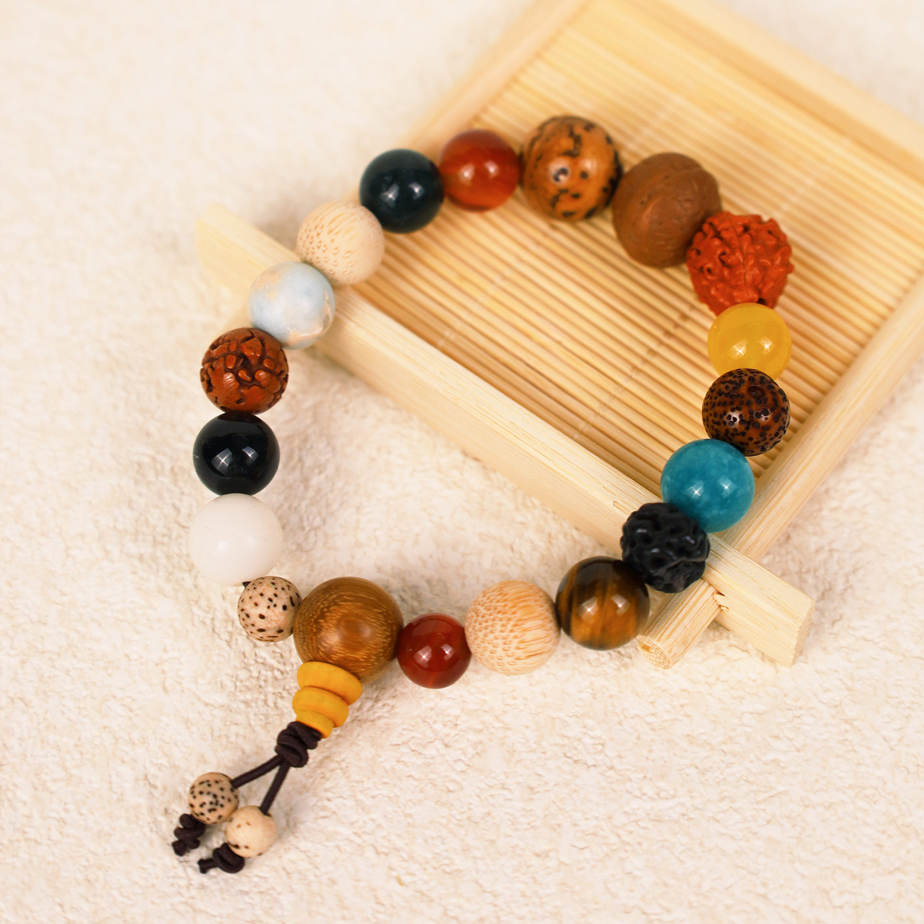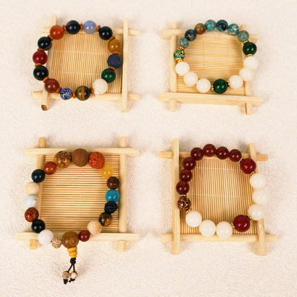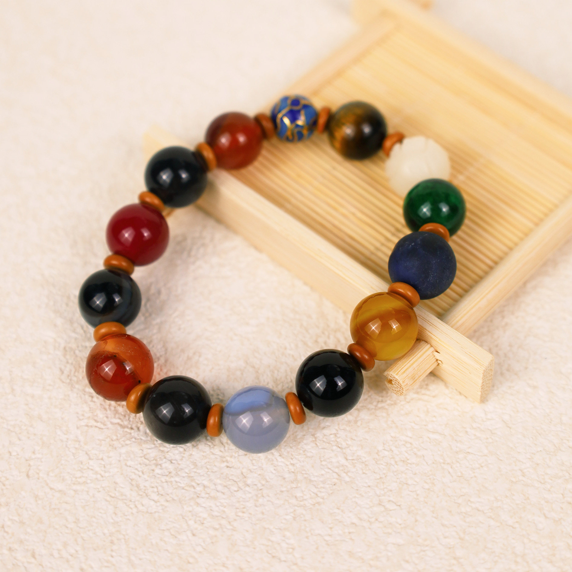 招财多宝手串手链国风可盘可戴男女通用国潮风天然宝石绿松石玛瑙