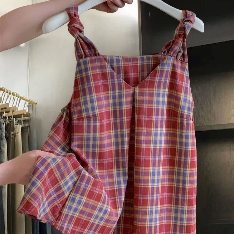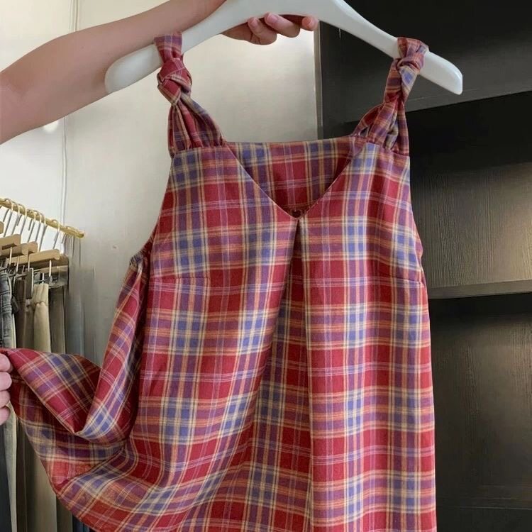 加小码春季小个子150cm女装XXXS显高格子吊带背心女减龄V领娃娃衫