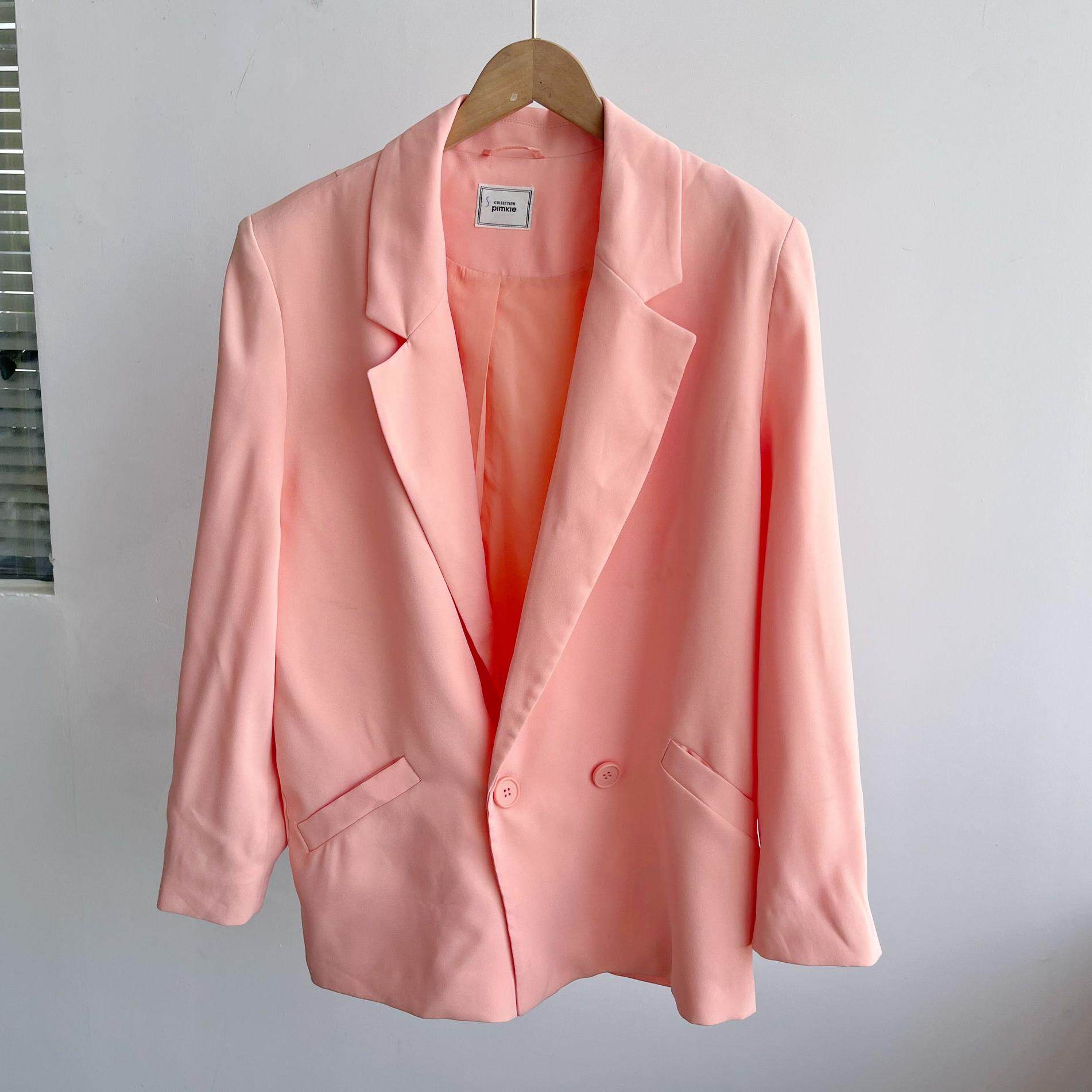 微瑕时尚宽松显瘦百搭简约盐系早秋韩系上衣长袖外套西服舒适Y9