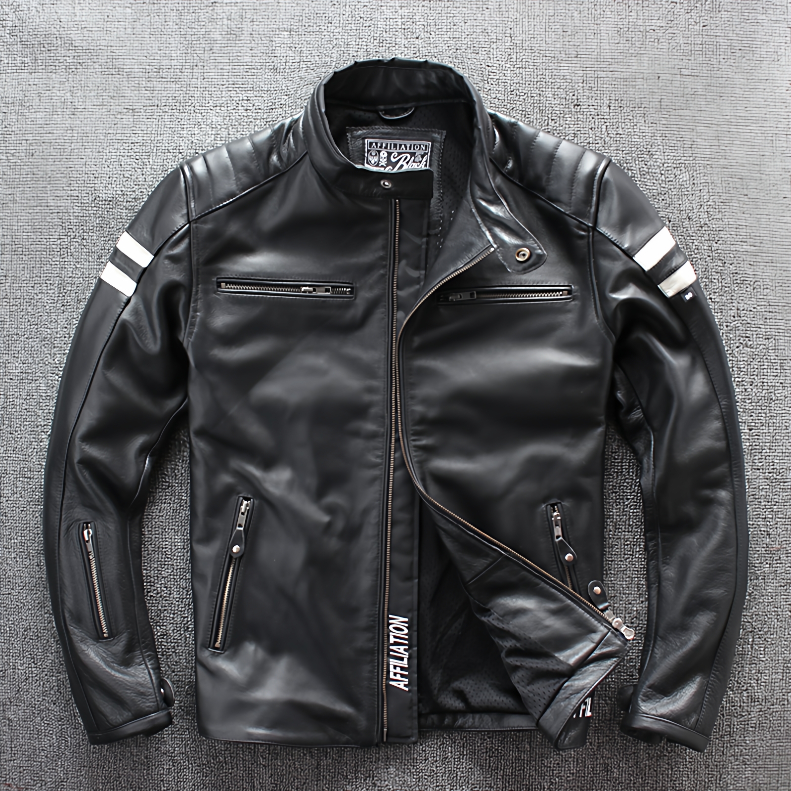 林志颖同款真皮皮衣机车服
