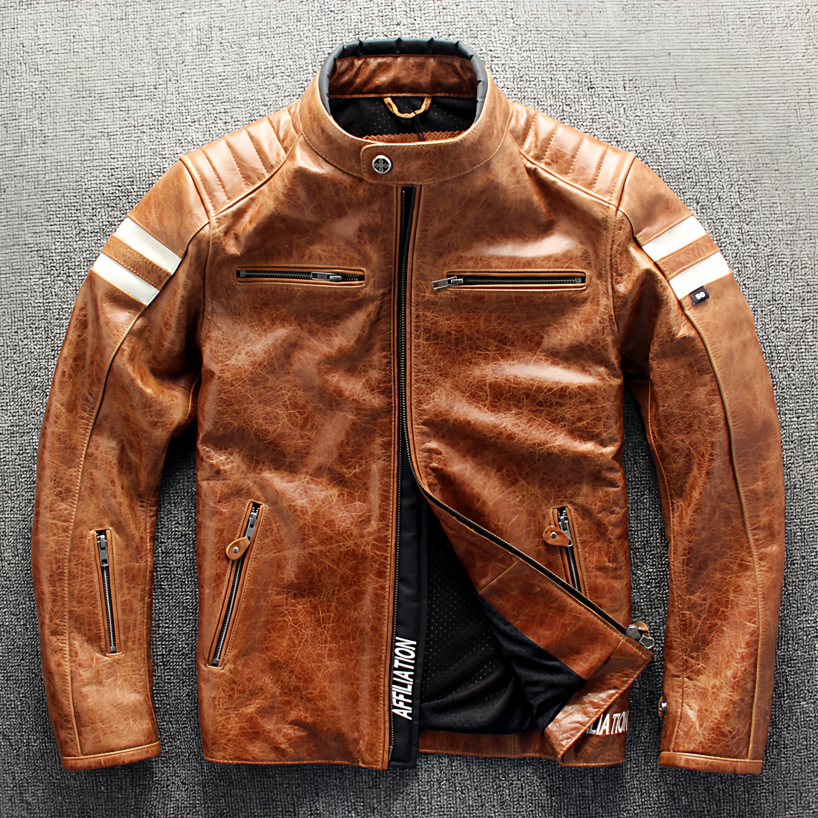 秋冬新品真皮皮衣男头层牛皮立领修身摩托机车服骑行服皮夹克外套