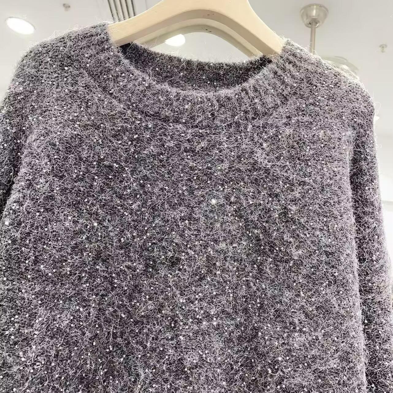 亮片圆领套头毛衣女冬季新慵懒风百搭宽松休闲针织打底衫特0.48
