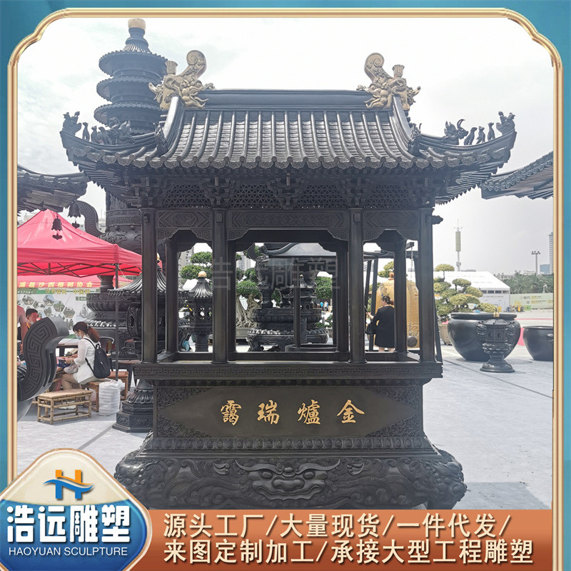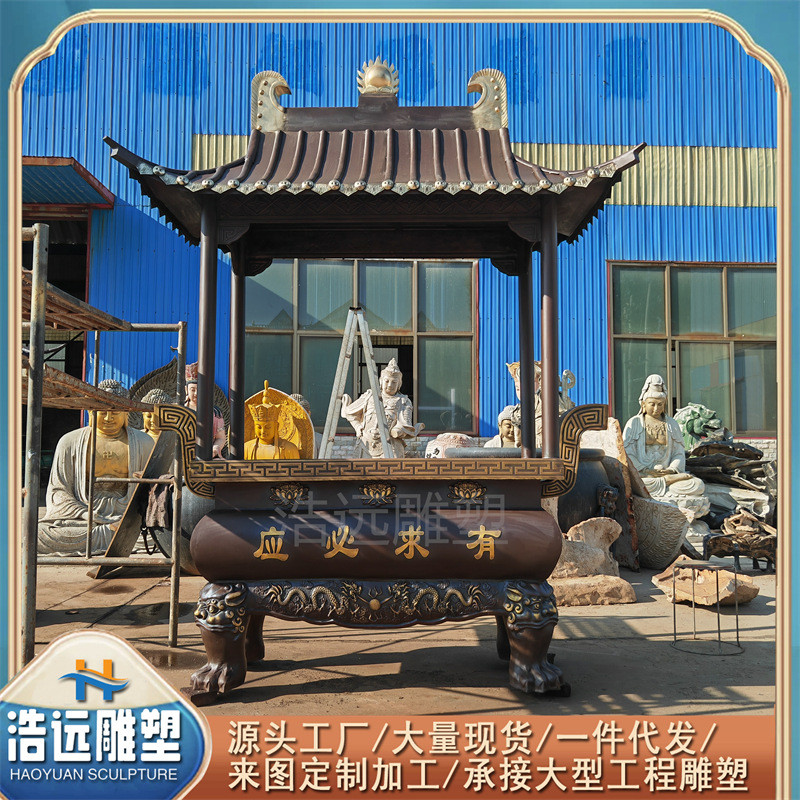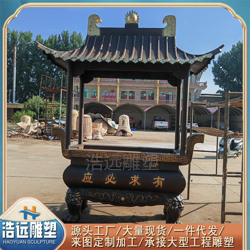 宗祠寺庙道观长方香炉八龙柱仿古宗教帯盖香炉浩远雕塑