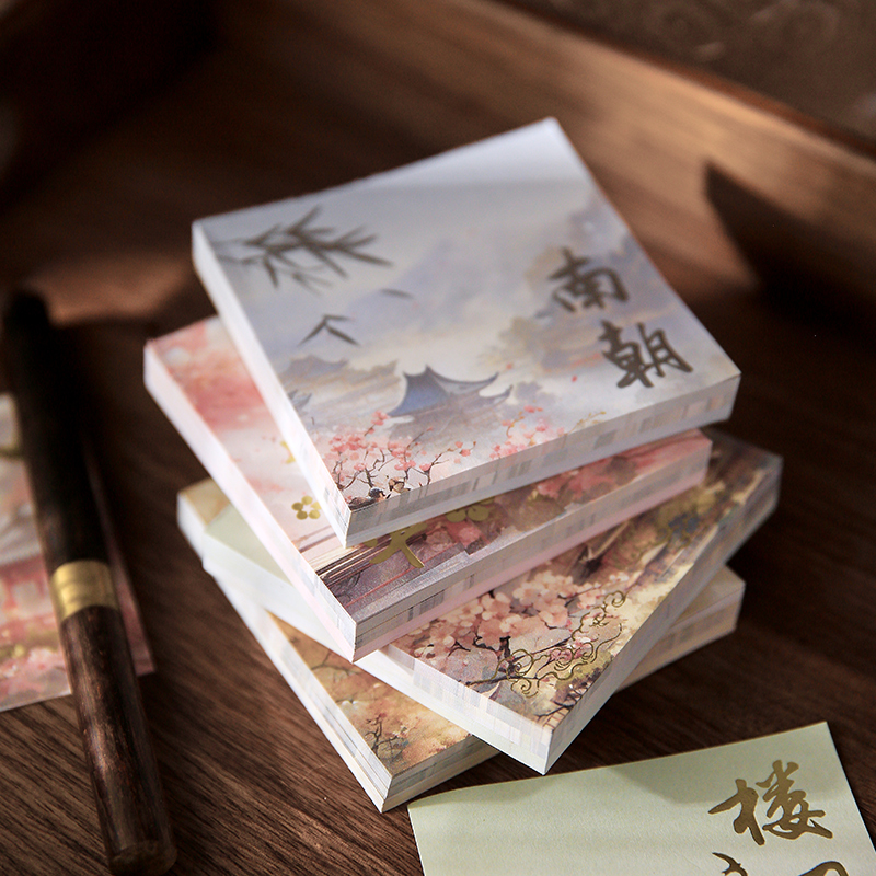 天阙若梦古风烫金便签本复古韵味国风景色可撕便签纸无粘性手帐打底素材纸学生记事备忘留言便利贴小本子