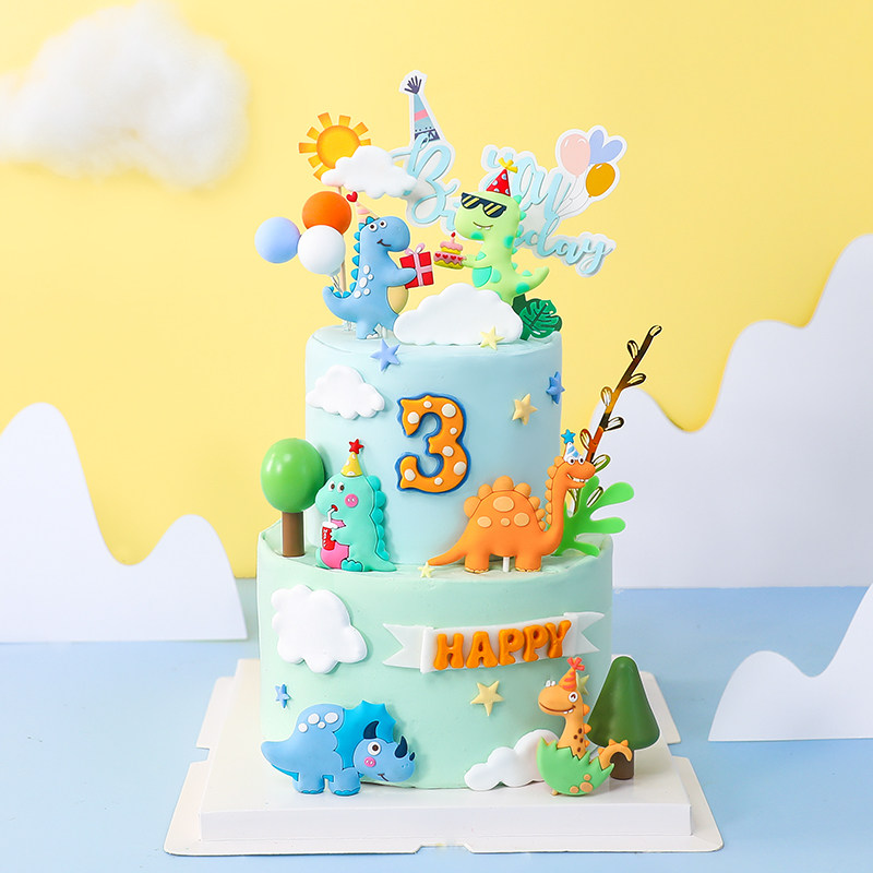 烘焙恐龙蛋糕装饰卡通软胶插件森系侏罗纪男孩生日甜品台派对插牌