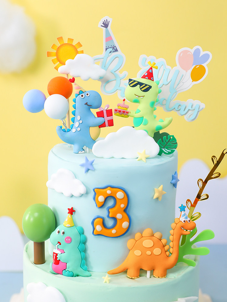 烘焙恐龙蛋糕装饰卡通软胶插件