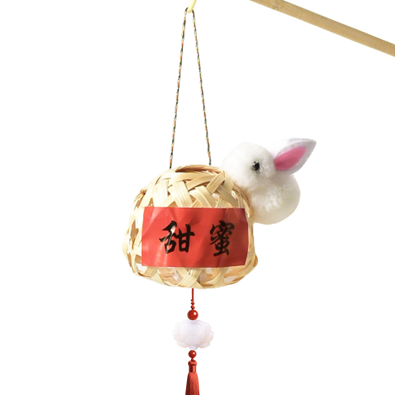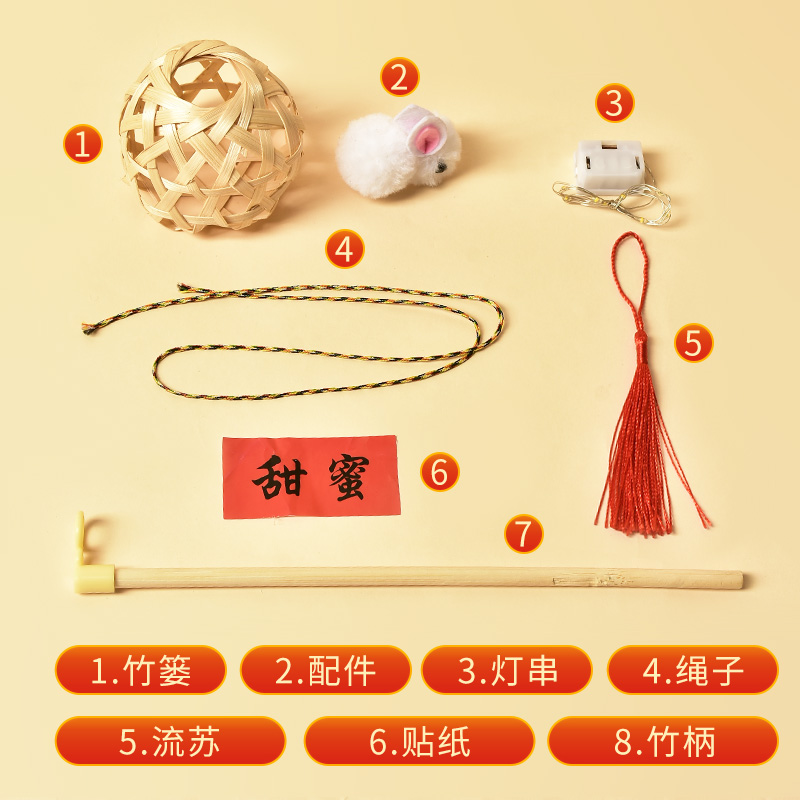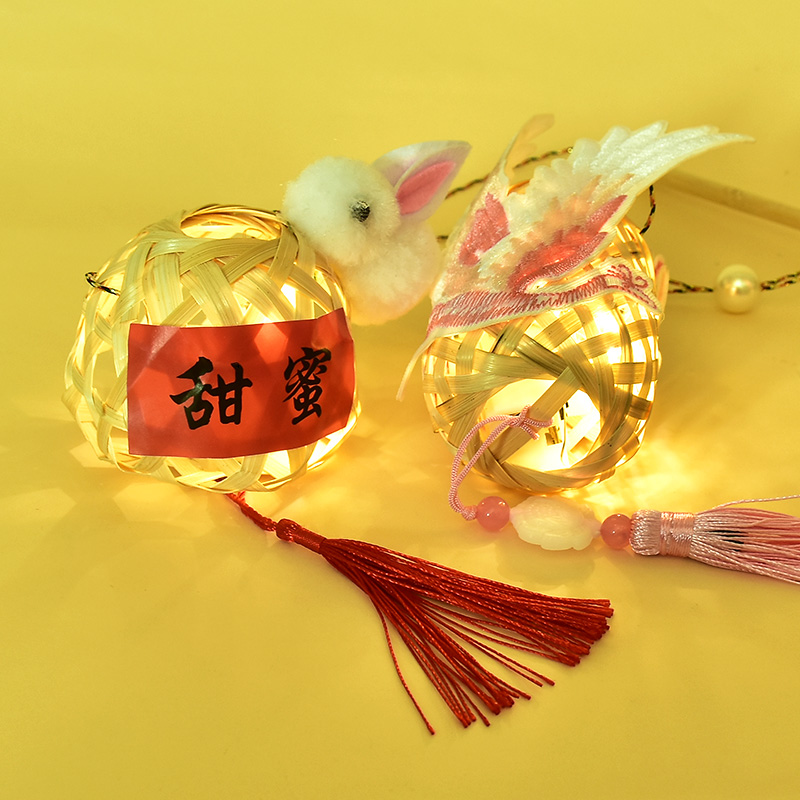 中秋节竹编手工diy材料迷你小灯笼儿童玩具手提发光兔子花灯挂件