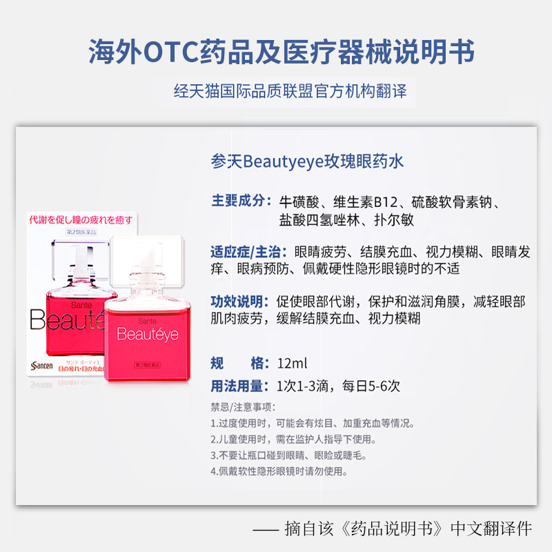 日本参天眼药水Beauteye玫瑰滴眼液进口正品官方缓解眼疲劳12ml