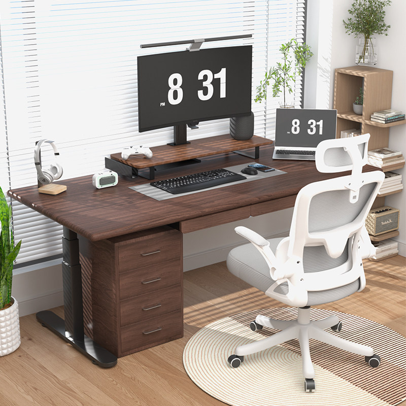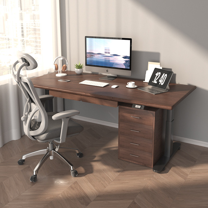 ZOMO进口实木电动黑胡桃木电动升降桌电脑桌工作台北欧简约长方形