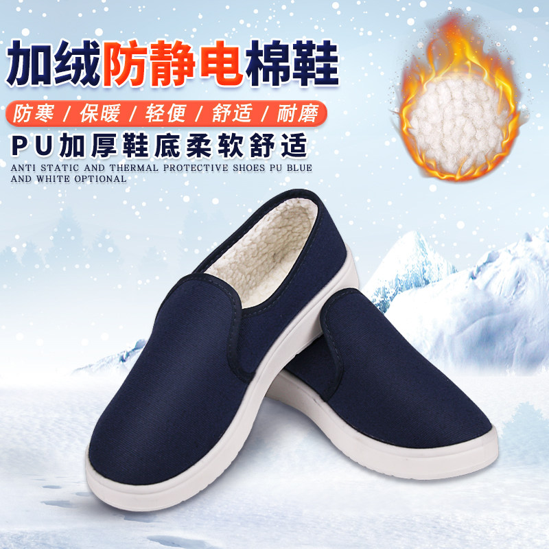 防静电棉鞋女软底加绒加厚高帮白色蓝色工作鞋无尘车间电子厂冬季