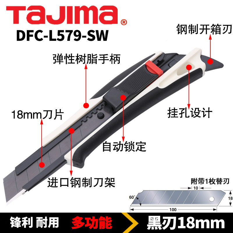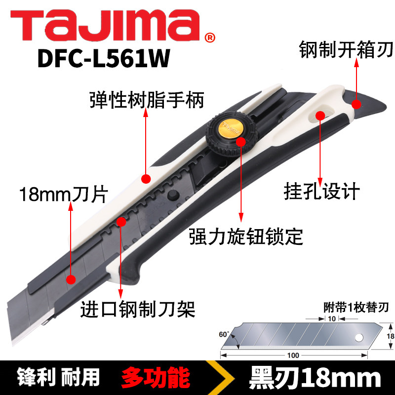 田岛TaJima日本进口美工刀18mm刀架切割工具介刀多功能刀套裁纸刀