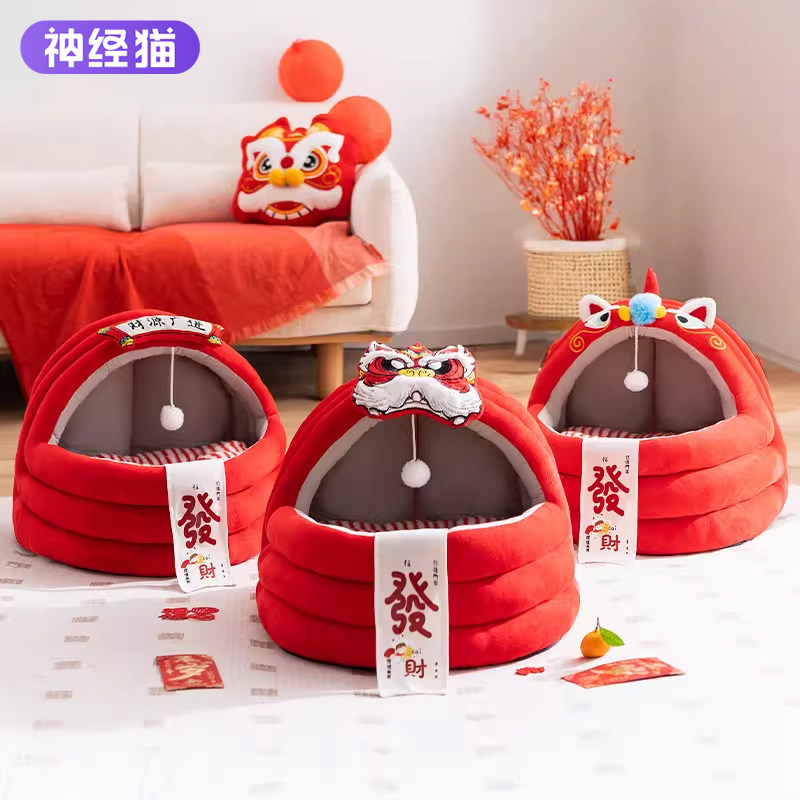 醒狮宠窝丨红绒裹福,毛娃躺招财