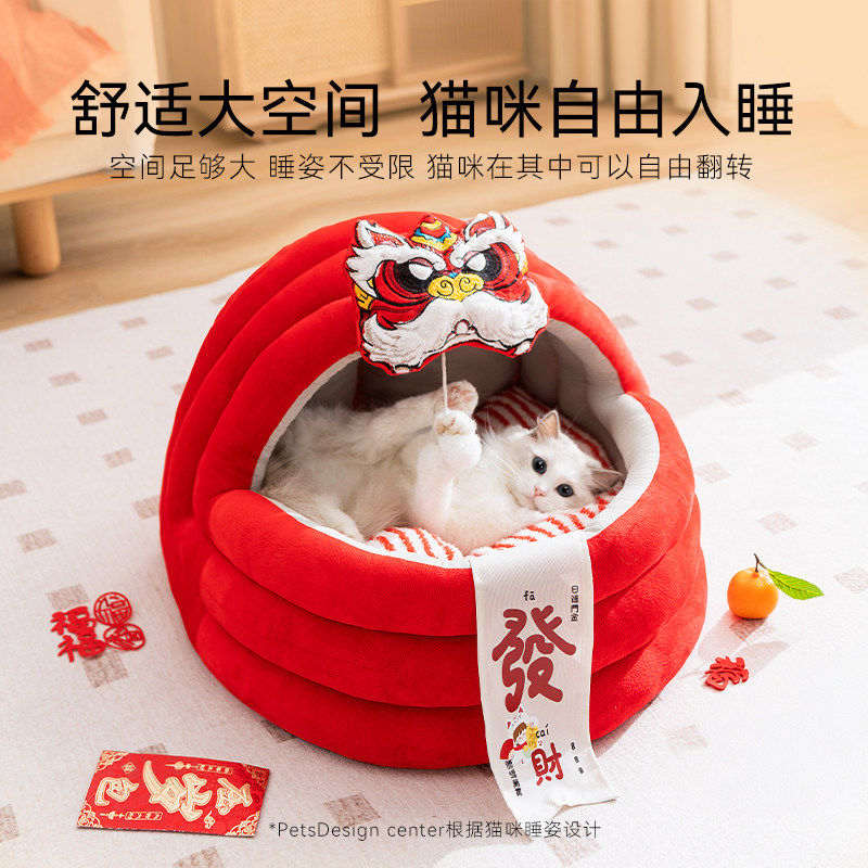 猫窝冬加厚冬季保暖苹果窝猫咪半封闭加厚蒙古包安全感新年宠物床