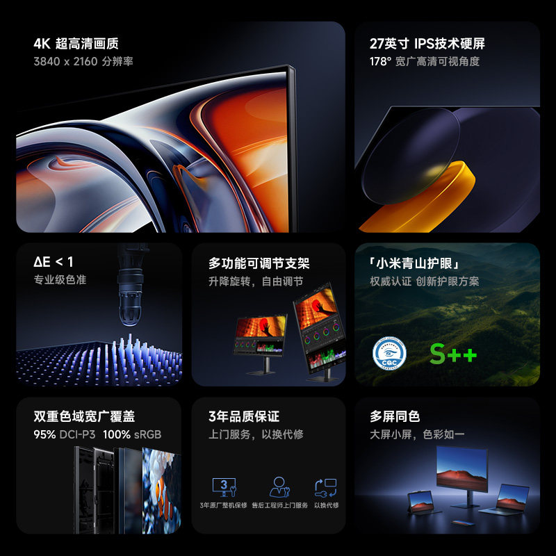 小米RedmiA27U4K高色准旋转升降支架显示器