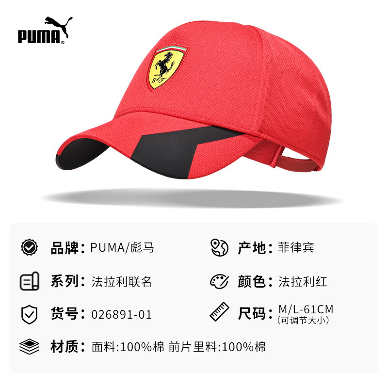 极地Puma彪马法拉利联名运动帽运动训练防晒潮流休闲帽026891-01