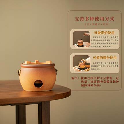 围干炉煮茶粗陶提炭炉烧陶瓷防烫梁壶家zch-0231用龙猫小型茶温炉