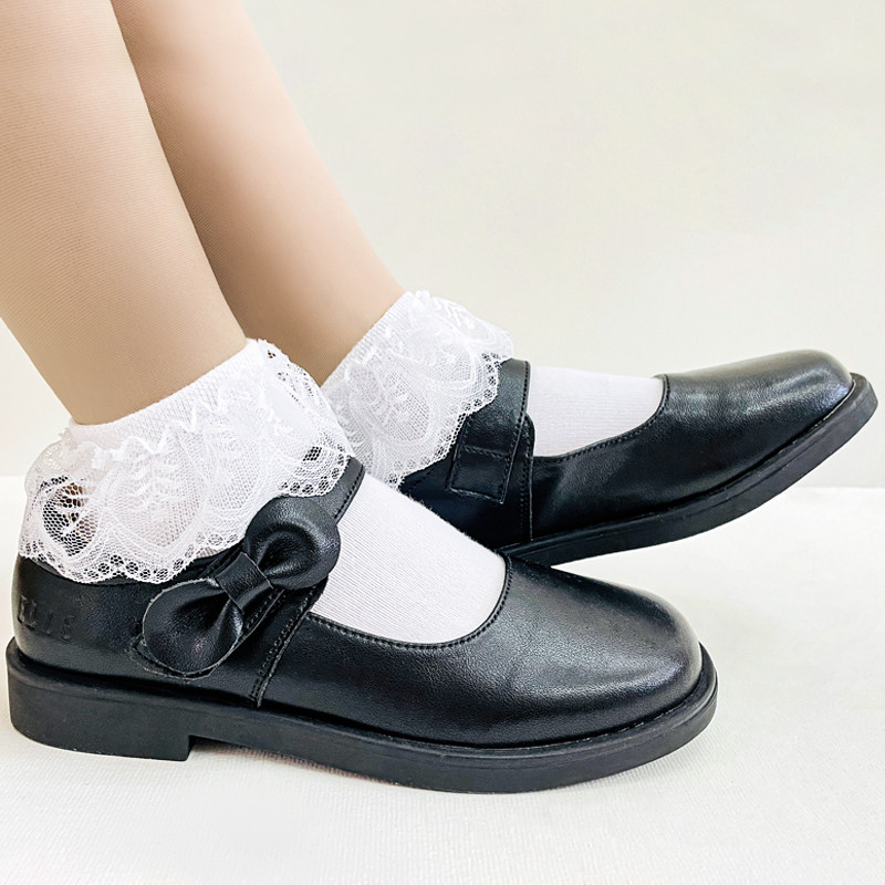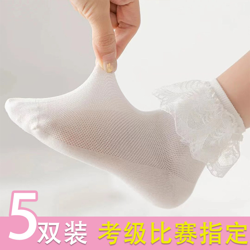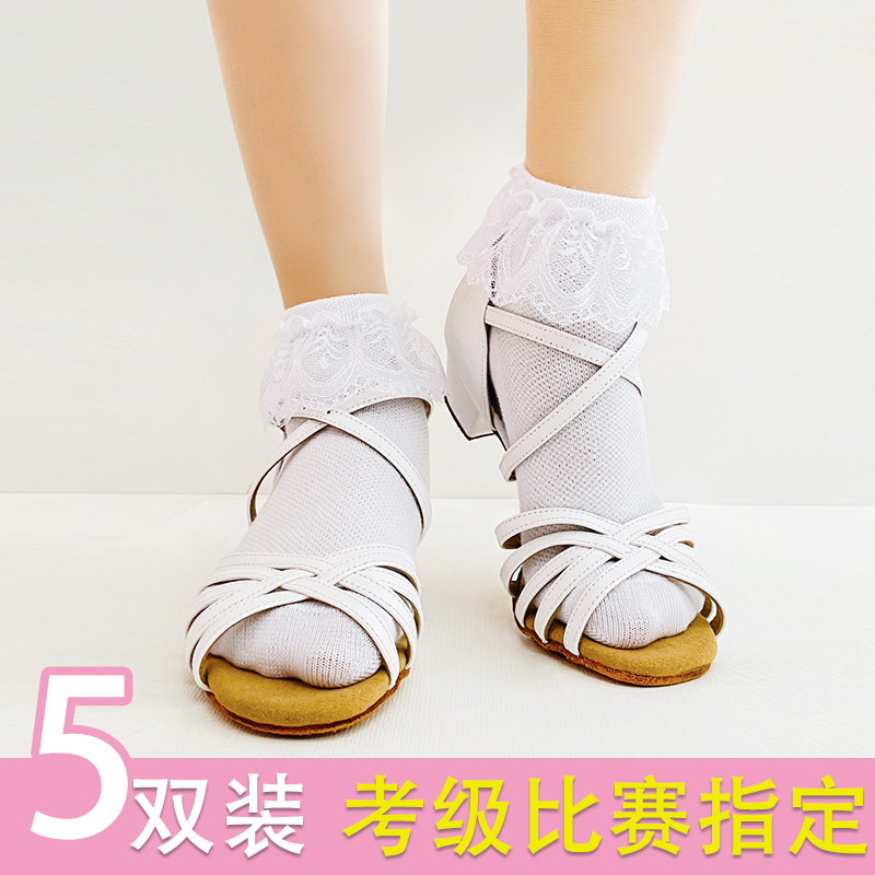 女童拉丁舞专用袜春夏薄款考级蕾丝公主袜儿童棉袜表演白色花边袜