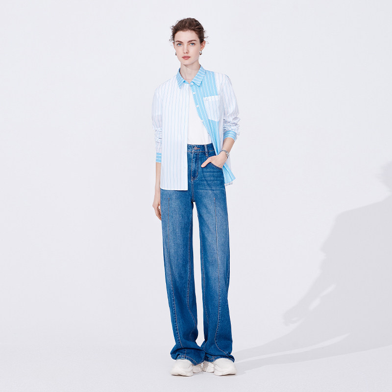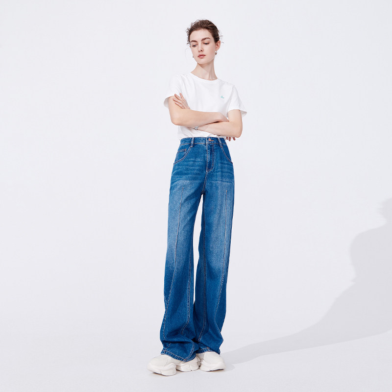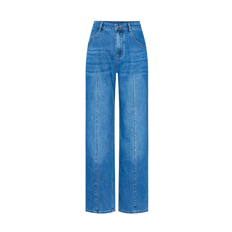 Navigare意大利小帆船蓝色水洗牛仔裤女夏季薄款显瘦直筒长裤子
