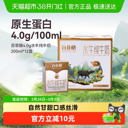 【包装随机】百菲酪水牛奶4.0g蛋白200ml*12盒/箱儿童营养牛奶