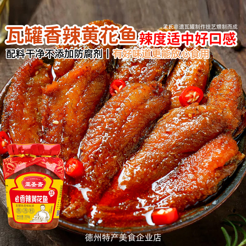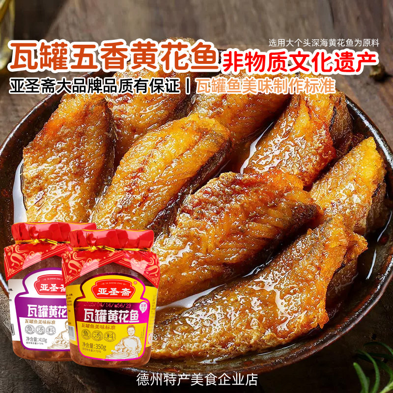 亚圣斋瓦罐黄花鱼即食海鲜零食罐头装小黄鱼五香辣酥带鱼下饭熟食