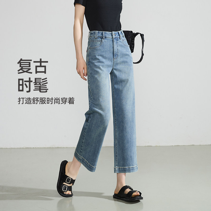 逸阳八分宽直筒牛仔裤
