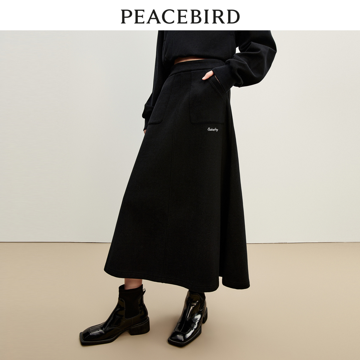 太平鸟 2025年冬季针织半身长裙女士高腰半身裙刺绣套装奥莱