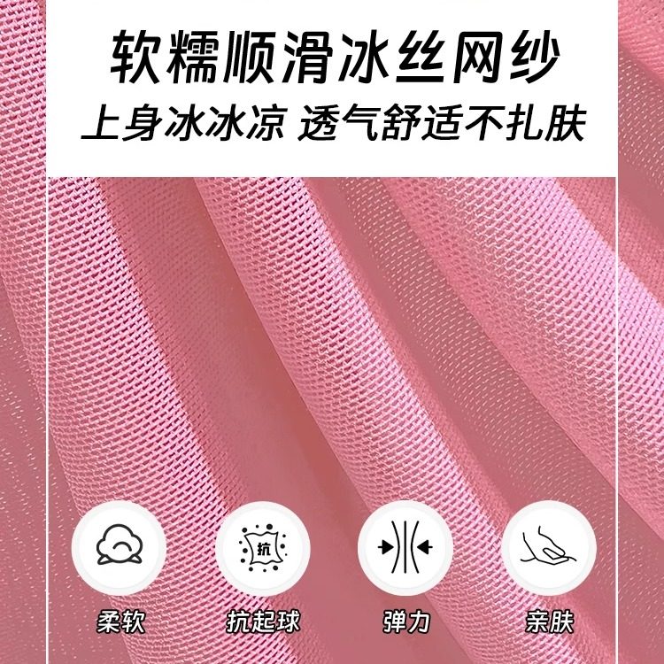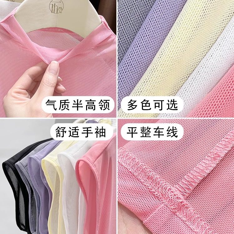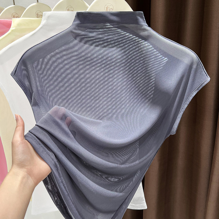 速干半高领冰丝打底衫网纱无袖t恤女夏新款背心内搭薄款网衫上衣